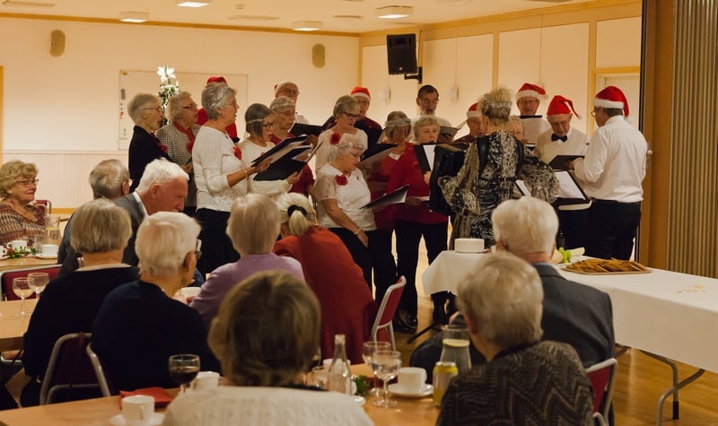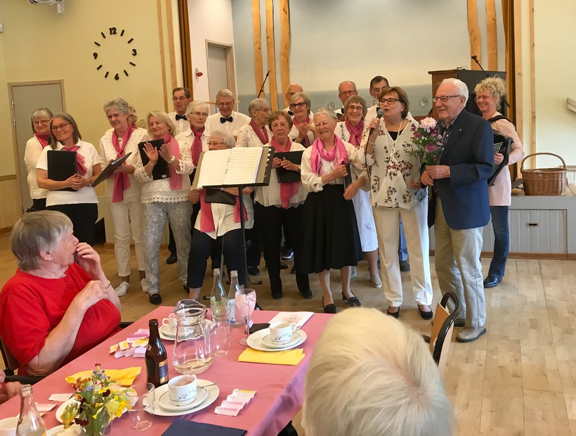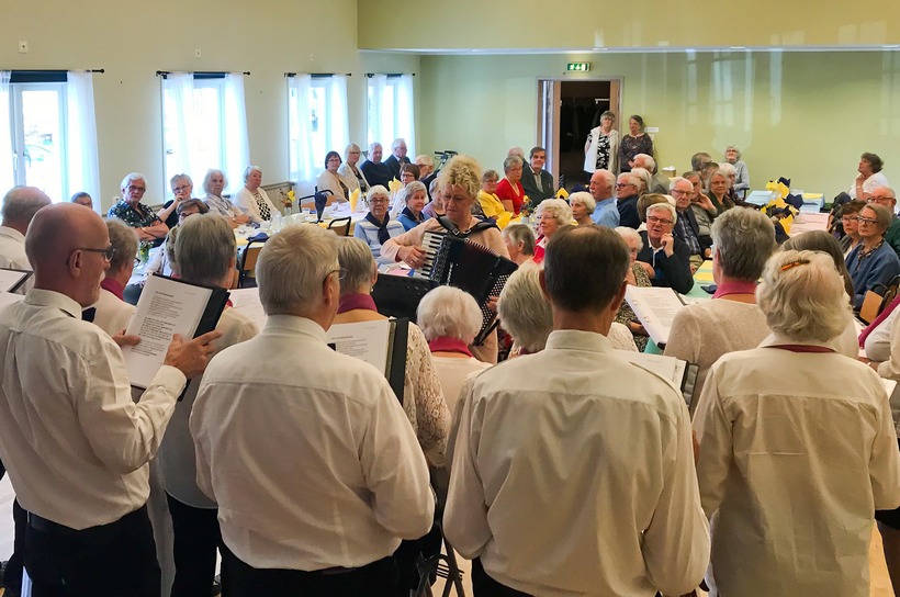 - PRO-kören "Glada Gänget" från Sillhövda bjöd sång- och musikunderhållning med kända sånger och visor från förr i tiden som fortfarande går hem. På plats fanns 13 tonsäkra sångare och ett par skickliga dragspelare.