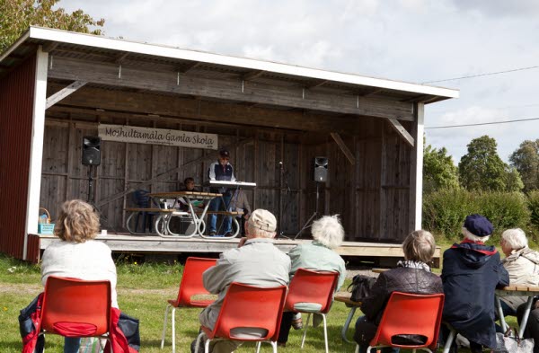 Egon Lönnqvist hälsade välkommen och gav en historik om Moshultamåla gamla skola, hur den hamnade på den plats den står nu och om de olika verksamheter som funnits där.