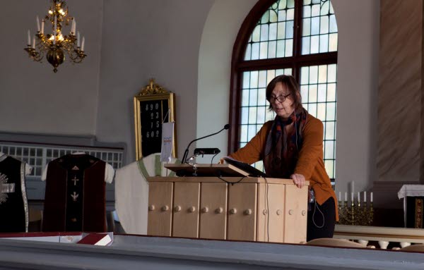 Gunilla Håkansson läste en egen skriven dikt "Allt är klätt i vita kläder". Dikten handlade om Vissefjärda kyrka.