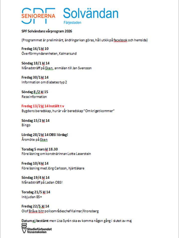 För närvarande har de 150 platser som Kalmar län tilldelats till 4-länsträffen på Gränsö Slott bokats. Hoppas ni kan informera så många som möjligt om detta, så de inte bokar och betalar in avgiften. De kan naturligtvis sätta upp sig på väntelista om vi tilldelas flera platser från något av de andra länen, men det vet vi inte i dagsläget. Hälsningar,Ann-Greth Jonsson på Kalmardistriktets kansli