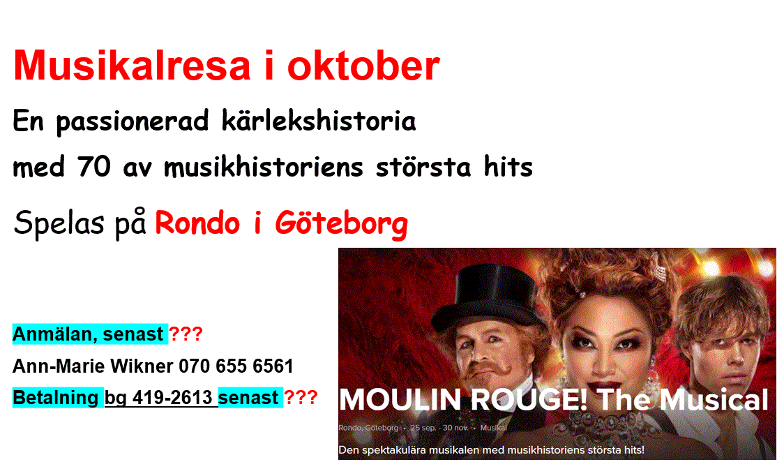 Musikalresa Moulin Rouge i Göteborg, 31/10-1/11