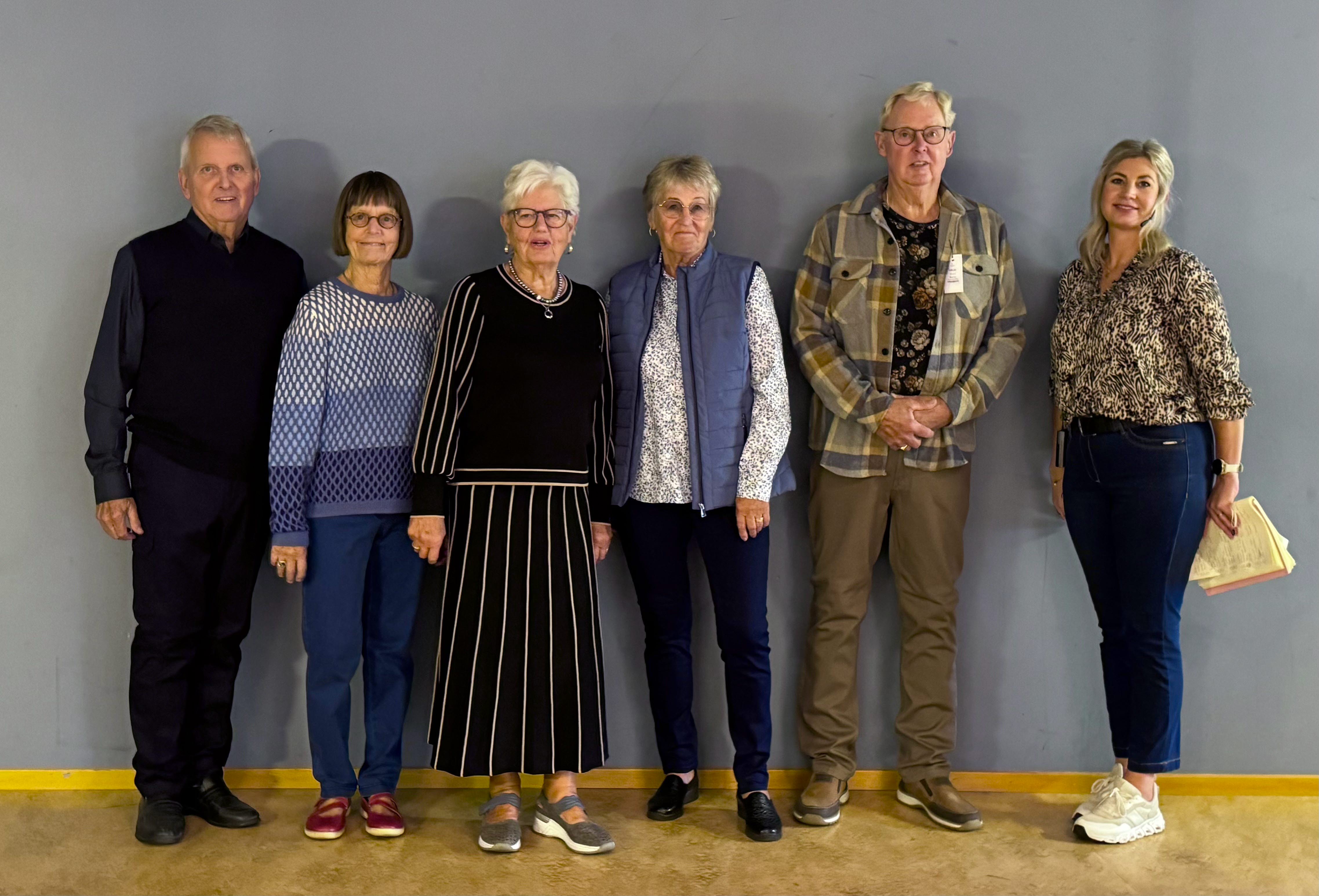 Till medlemsmötet i Torsås Bygdegård hade företaget SeniorShop och dess representant från Färjestaden Hanna Törngren bjudits in för att ge oss inspiration till klädesval inför höst och vinter. Till sin hjälp hade hon fem medlemmar som agerade mannekänger med den äran. På bilden ser vi dem från vänster: Rolf Olsson, Inge-Merete Breum, Marie Nielsén, Monica Larsson, Ronny Olsson och företagets representant Hanna Törngren.