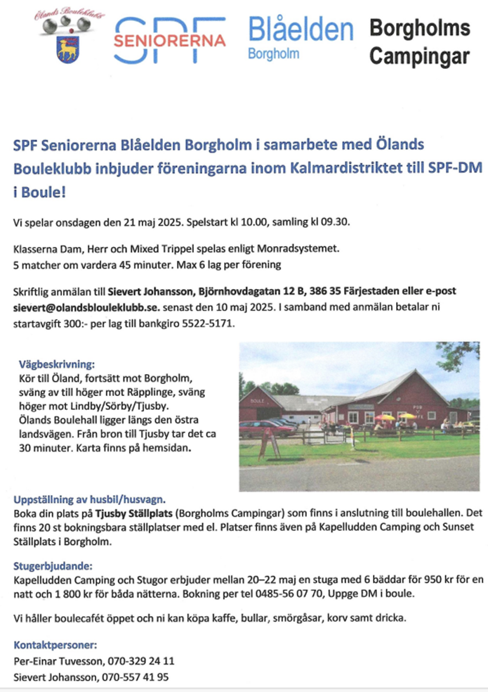Inbjudan till DM i Boule på Öland den 21 maj 2025
