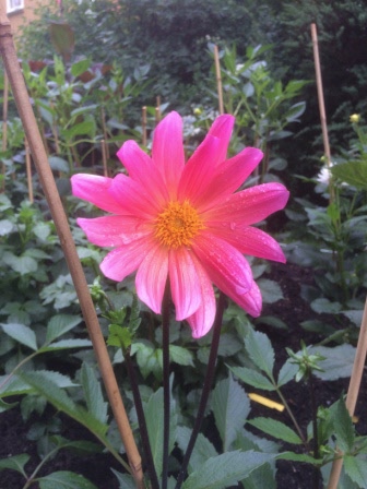 Några kvarvarande magnoliablommor lyste upp i regnet -