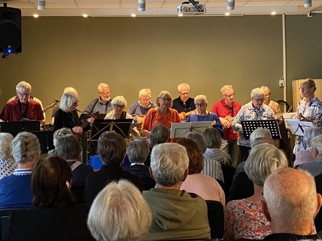 På SPF Hjortens sista möte för våren uppträdde föreningens egen ukulelegrupp med en delvis ny repertoar. Det 40-tal medlemmar som kommit fick höra låtar som de flesta kände igen och kunde tralla med i.