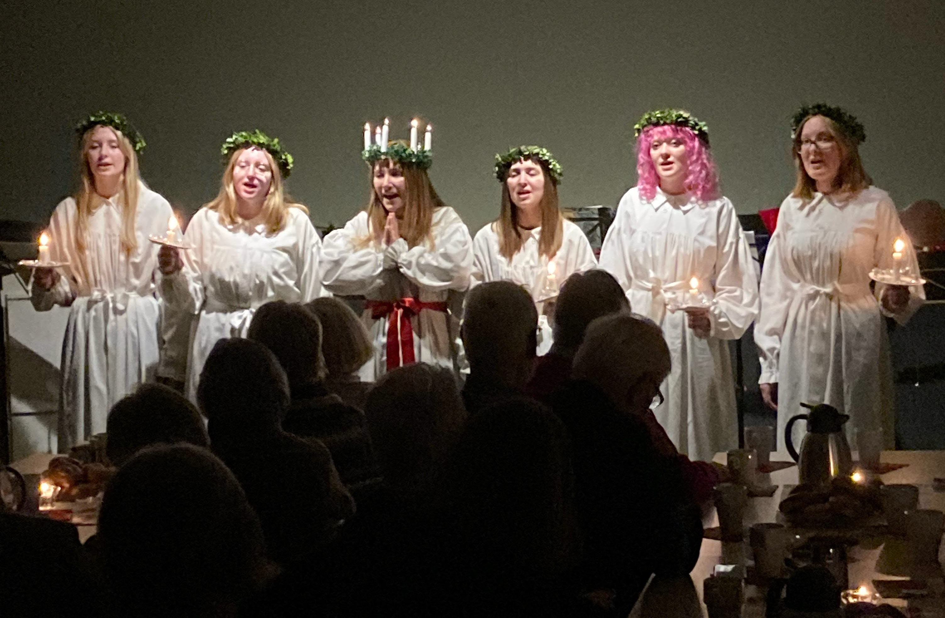 Ukulelegruppen återkom med en uppsättning andra favoritlåtar. Särskilt uppmärksammad blev "Nu tändas åter ljusen i vår lilla stad" med en lokalt anpassad text av föreningens ordförande. Och äntligen blev det dags för kaffe med lussekatt och pepparkaka som avnjöts medan "Thank you for the Music" klingade ut.