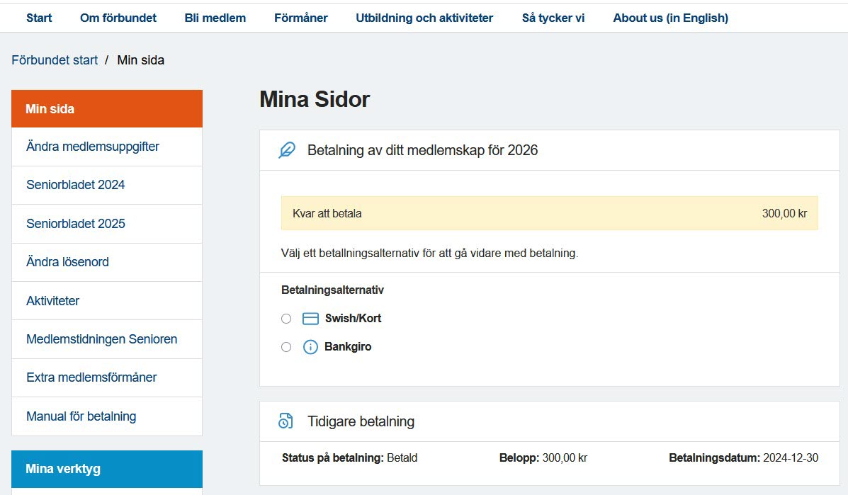 Från och med 4 november 2025 kan du betala din medlemsavgift för 2026 direkt via Mina Sidor. Här är instruktioner för hur du går tillväga.