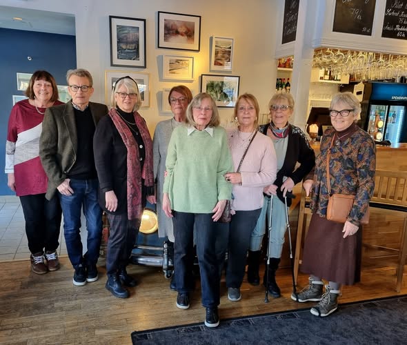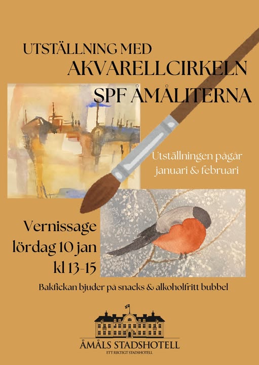 Akvarellgruppen hos SPF Seniorerna Åmåliterna hade vernissage på Stadt lördag den 10 januari. Hela gruppen på tio deltagare var samlade för att förevisa sina konstverk och hotellet bjöd på alkoholfri bubbel och tilltugg. Det droppade in människor hela eftermiddagen som med glas i handen beundrade verken.