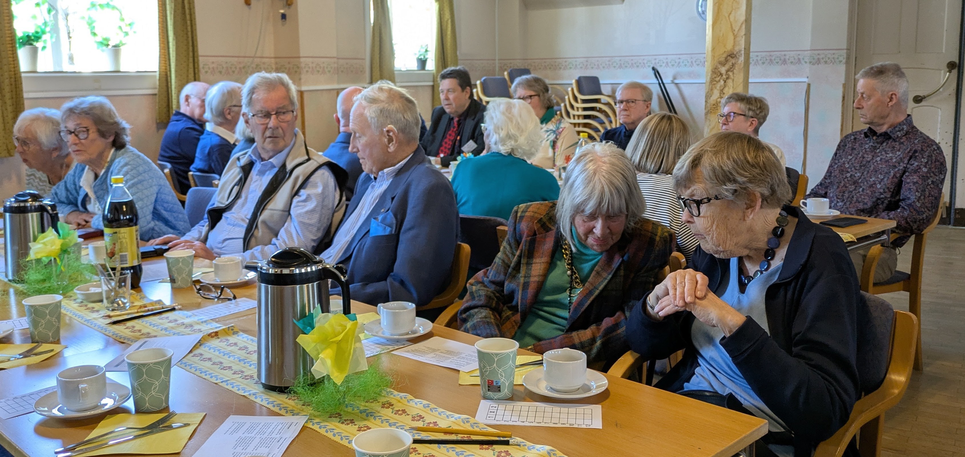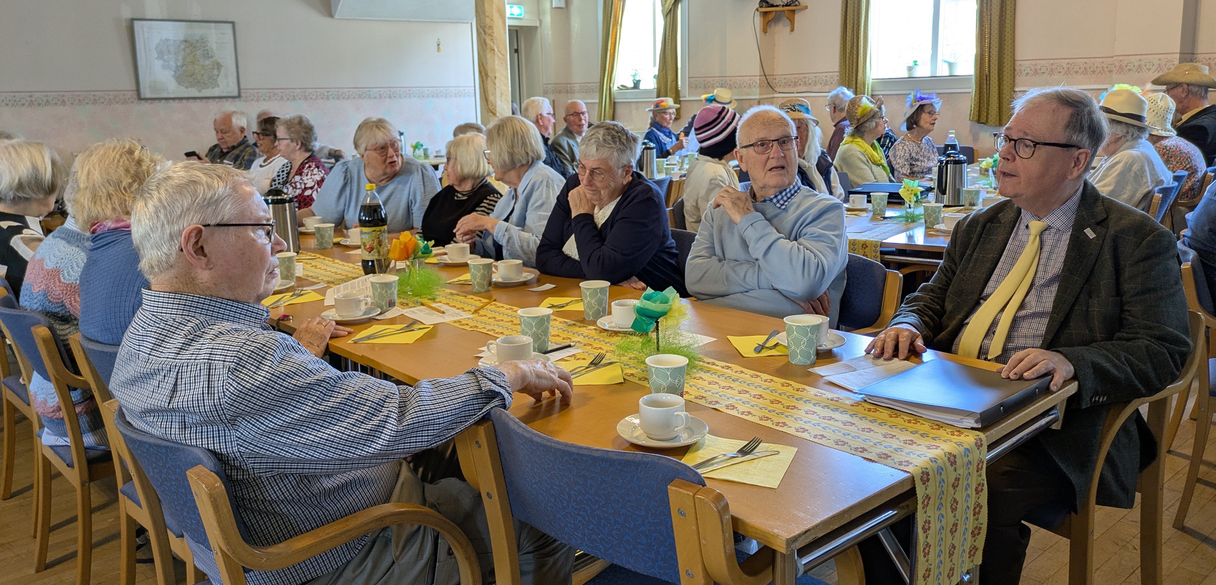 Vi var ungefär 90 stycken som ville fira in påsken tillsammans i SPF:s förening. När vi alla hittat en plats hälsade Per Ahlenius oss alla välkomna.