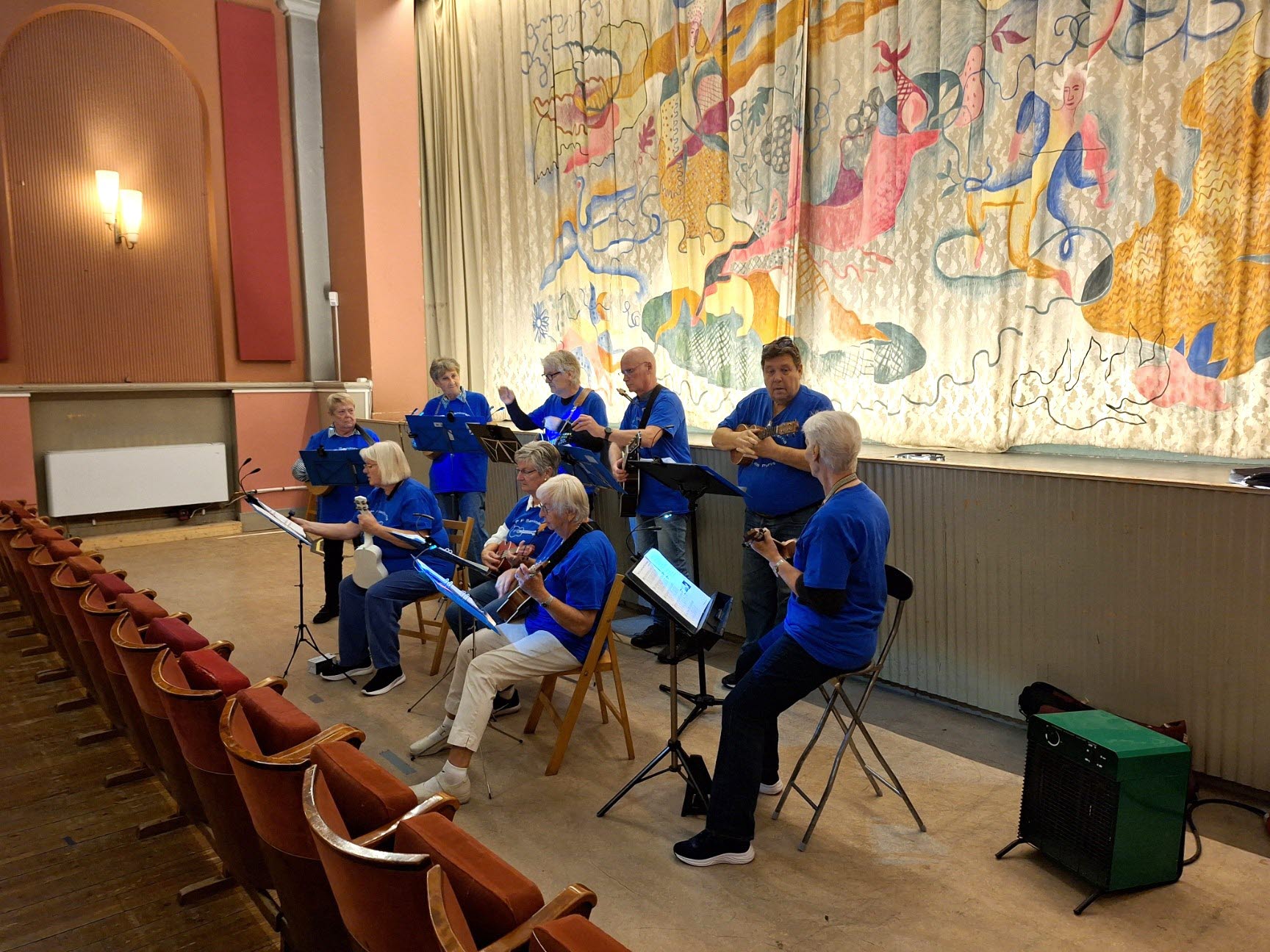 På söndagen underhöll Ukulelegruppen på Stora Biografen, en halvtimma innan Filmstudions filmvisning. Detta har blivit en uppskattad tradition. Ukulelegruppen spelade som vanligt glada och medryckande låtar. Det blev Taube, Afzelius och Elvis med mera. Applåderna blev stora.