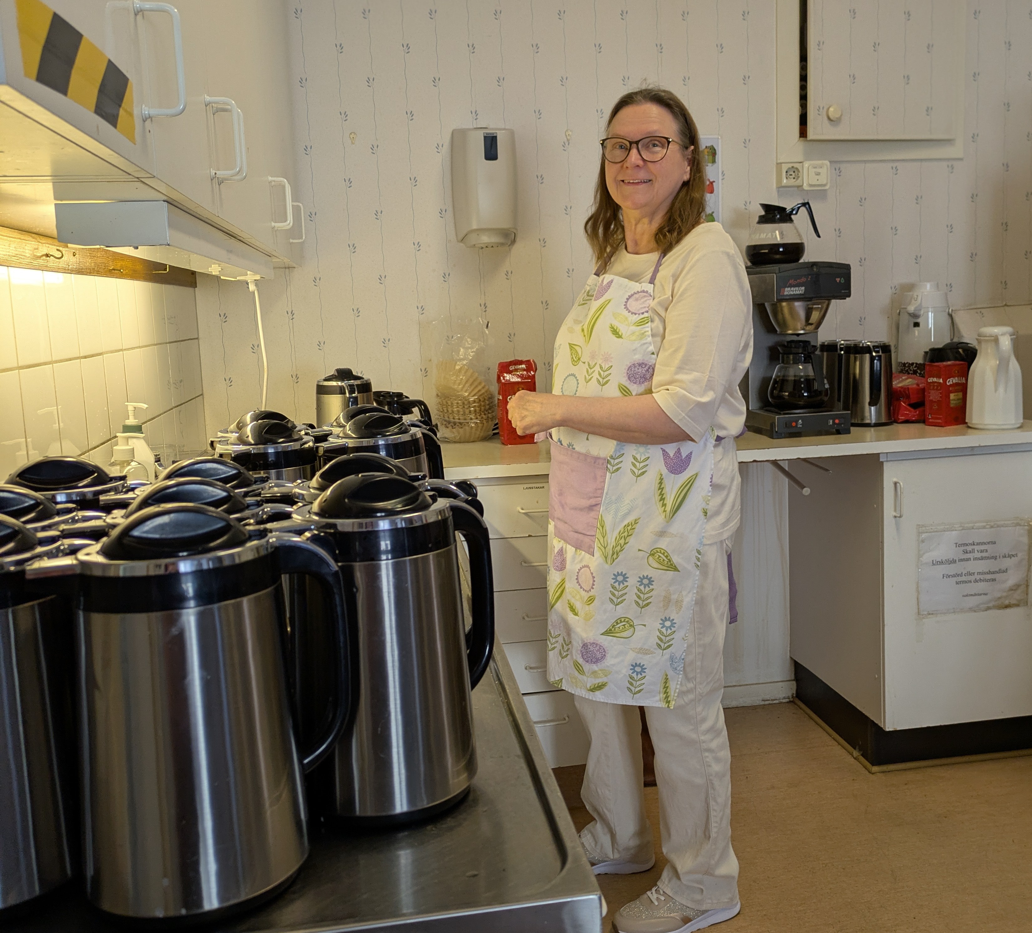 I tisdags den 15 april tittade jag in på festlokalen på Vallgatan för att se hur kaffegruppen organiserade sig. Numera har man delat upp sig i två kaffegrupper och en möbelgrupp, där två stycken möblerar rummet utefter vilken sorts tillställning man har. När träffarna är över ska allt tillbaks igen och som tur är brukar det alltid vara några andra som också hjälper till. Likadant är det för kaffegruppen. När träffen är slut är det alltid några fler som hjälper till att duka av och diska efteråt. Alltid tacksamt förstår jag. I tisdags var det Påskfest och smörgåsarna var inköpta till skillnad för andra gånger då smörgåsarna bres i köket. Ett digert jobb, och de smakar alltid gott. Träffarna är välbesökta och kaffe med tillbehör är både gott och berikande. Kaffegrupper består av tre i personer i varje grupp och där ingår även en dekorationsgrupp som denna dag hade påsk tema i rummet. Vill ni vara med så är det bara att höra av sig till Inga-Mari Olsbränning email imools@hotmail.com. De söker personer till båda grupperna och mest till möbelgruppen. Välkomna!