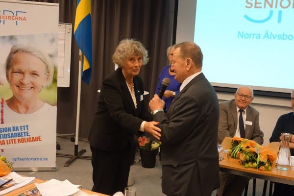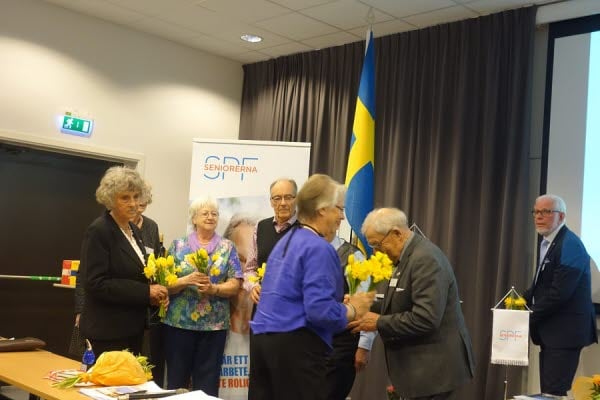Tillträdande Ordförande Siv Gustavsson delade ut blommor till avgående styrelseordföranden Kjell Hansson liksom till Janne Sjödahl som också avgick