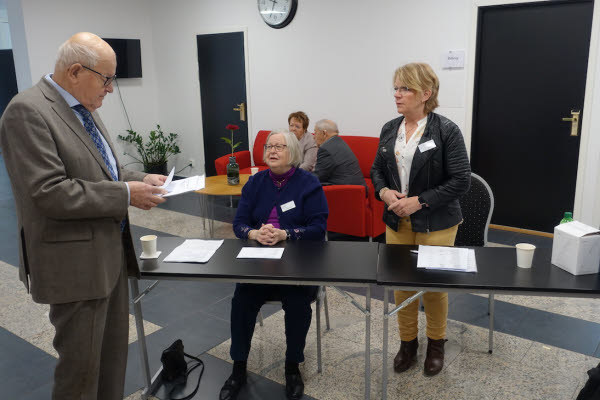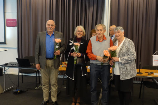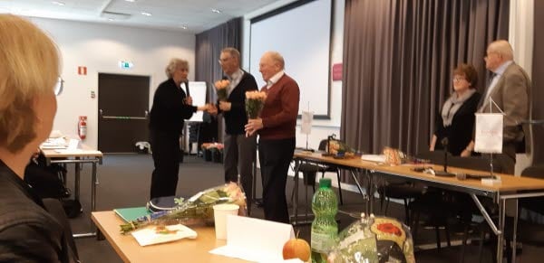 Valberedningen som har det svåraste av alla uppgifter fick blommor och tack för sitt arbete.
