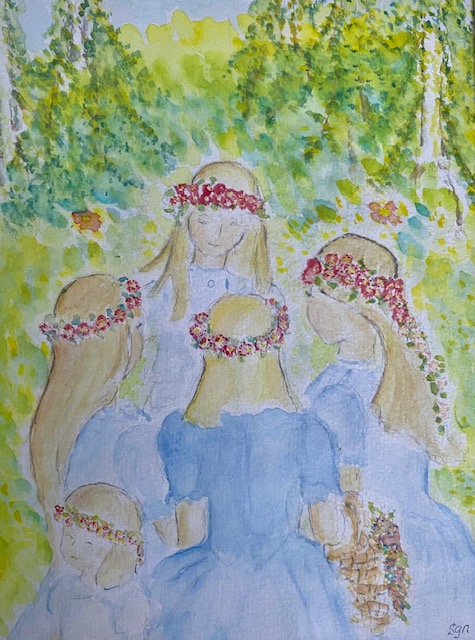 " En vänlig grönskas rika dräkt har smyckat dal och ängar. Nu smeker vindens ljumma fläkt de fagra örtesängar, och solens ljus /och lundens sus och vågens sorl bland viden förkunna sommartiden." skrev C. D. af Wirsén 1889.