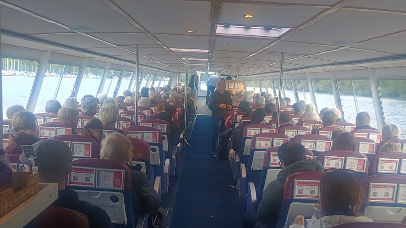 Vädret var inte det allra bästa men det var varmt och regntätt inne i den stora sightseeingbåten där man också kunde köpa kaffe med mera.