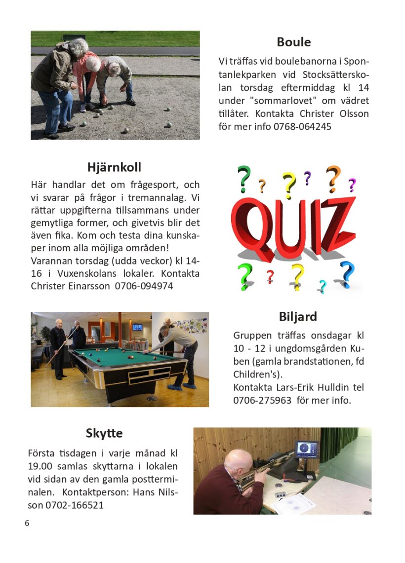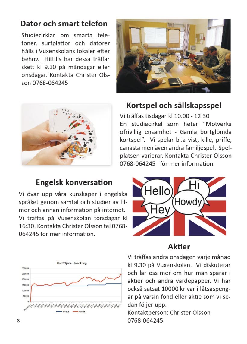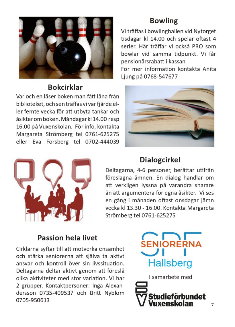 Du kan läsa om våra friskvårdsaktiviteter och studiecirklar i menyn till vänster om du använder dator.