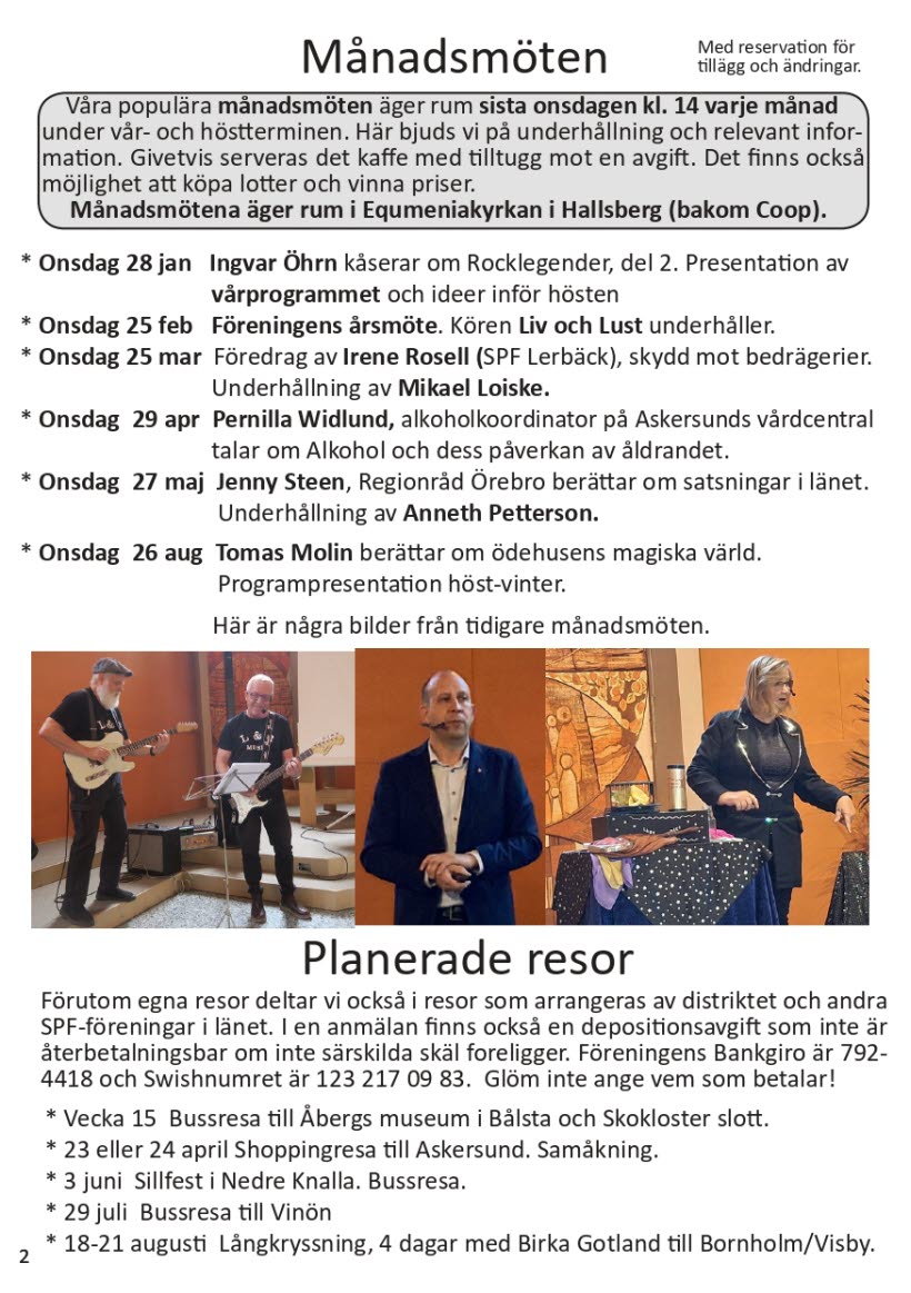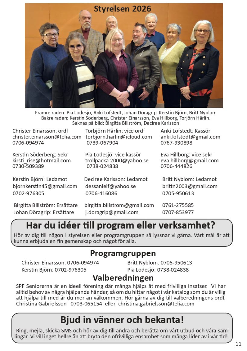 Nedan ser du programmet för våren 2026 och alla våra aktiviteter.