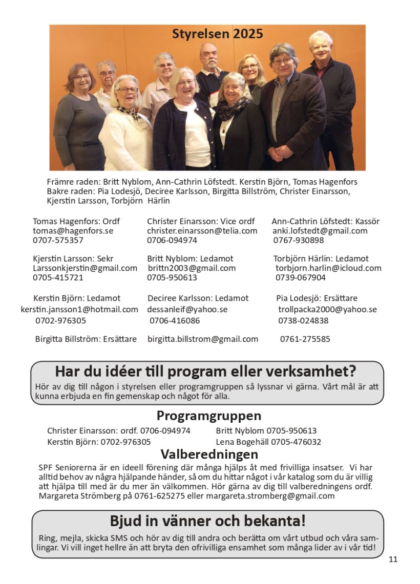 Nedan ser du programmet för höst och vinter och alla våra aktiviteter 2025.