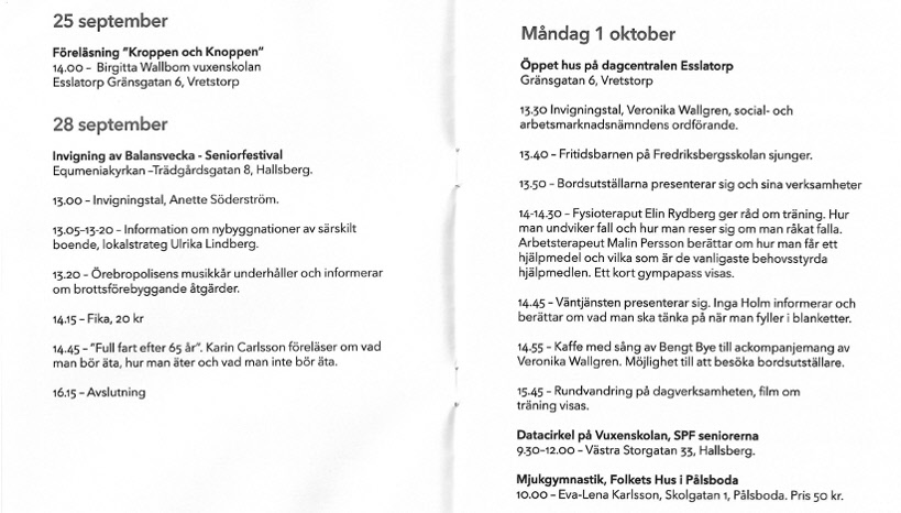 Balansveckan inleds tisdag 25 september med föreläsning "Kroppen och knoppen" i Esslatorp. Officiell invigning fredag 28 september kl 13:00 i Equmeniakyrkan.