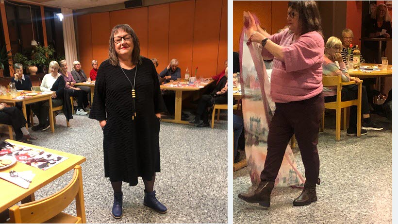 Vi var 50 förväntansfulla deltagare som fick en fingervisning om höstens härliga färger och mode. Irene E, Monica R och Maggan H från oss visade kläder från Europamode och Boutique Britta med sina egna modeller. Skor och stövlar kom från Askersunds skoshop. Samtliga aktörer hemmahörande i Askersund. Från Hallsberg hade vi Ulla Rehnberg, UR Design med egensydda tjusiga linnekläder som finns att beställa hos henne.