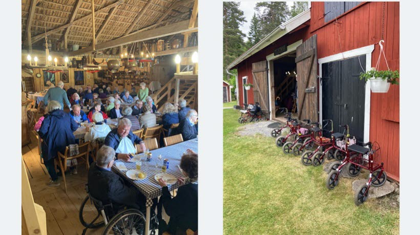 Onsdag 4 juni rullade en nästan fullsatt buss in på den idylliska gården omgiven av leende sommarängar med glada och hungriga seniorer från Hallsberg.