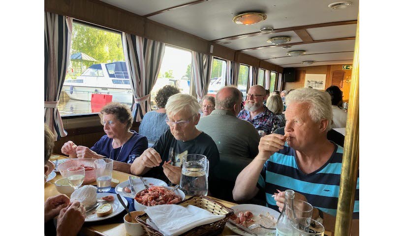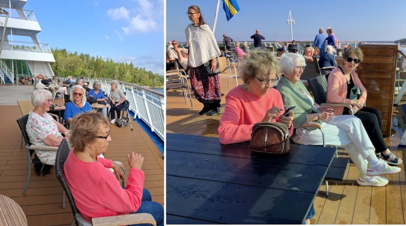 Flera av seniorerna åkte räkturen för första gången och var mycket förtjusta. Blommande rosenbuskar, doftande schersminer och lindar kantade resans inledning och de vackra herrgårdarna utmed Hjälmarens stränder syntes bortom gungande vassar. ”Åh, så vackert”, suckade de mätta och glada resenärerna på båtens soldäck.