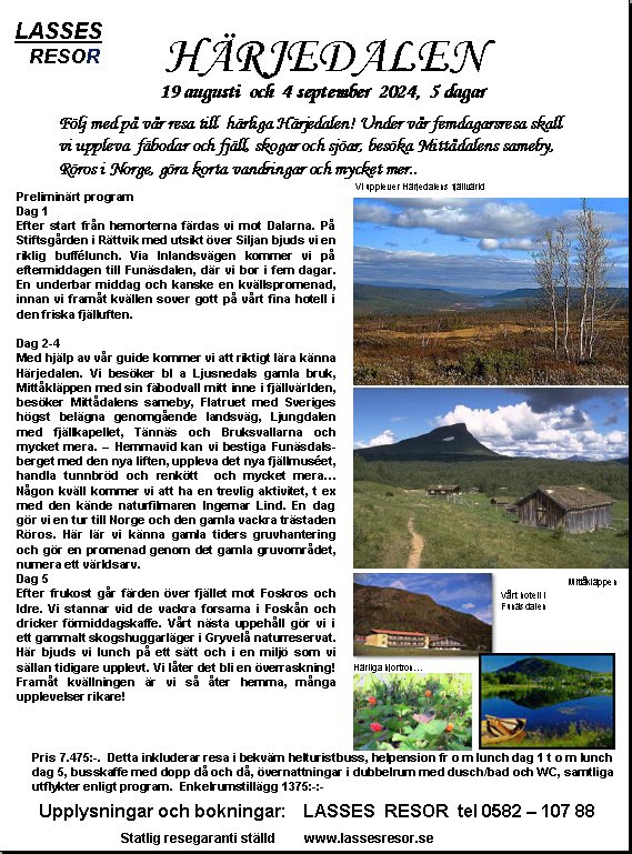 i samarbete med Lasses Resor. Vill man säkra en plats vill Lasse