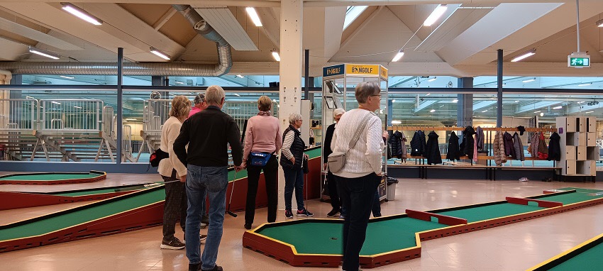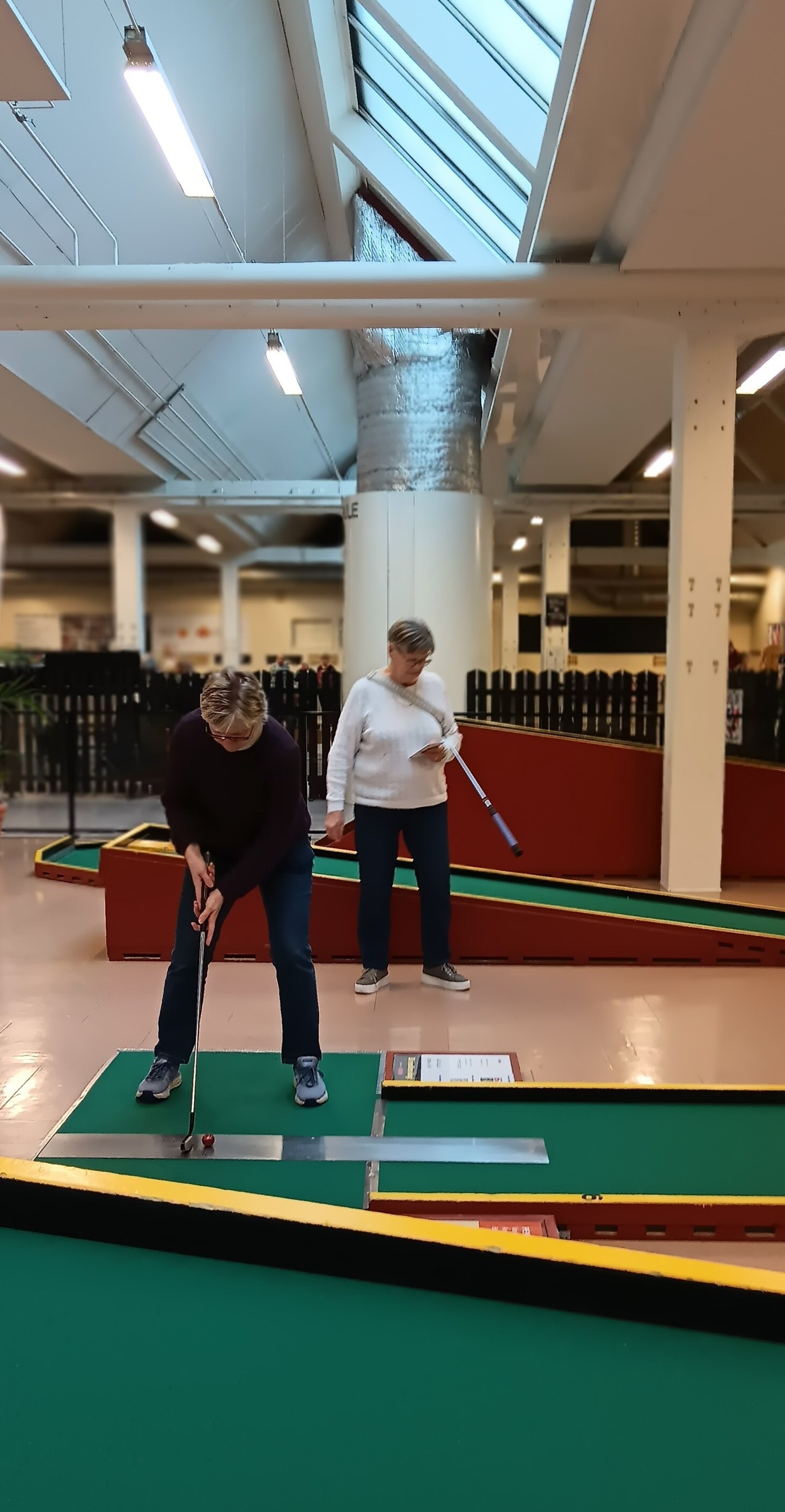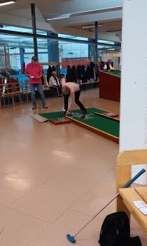 Det är det närmaste stället för oss där vi kan spela inomhus. Mycket fina golfbanor! Här fanns också en boule-bana.