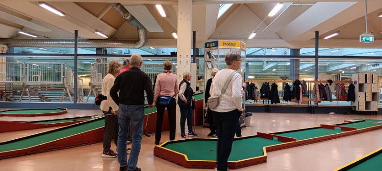 Vi var 11 stycken från bangolfen som styrde kosan mot Eskilstuna för att spela bangolf inomhus i Munktell-arenan.