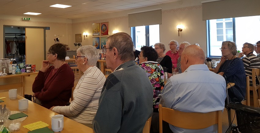 Sedan blev det kaffe, smörgås och kaka samt lottdragning. Till glädje för alla var det fler som fick möjlighet att vinna! Många fick också möjlighet att boka in sig på höstens tre sociala luncher som planerats i september, oktober och november.