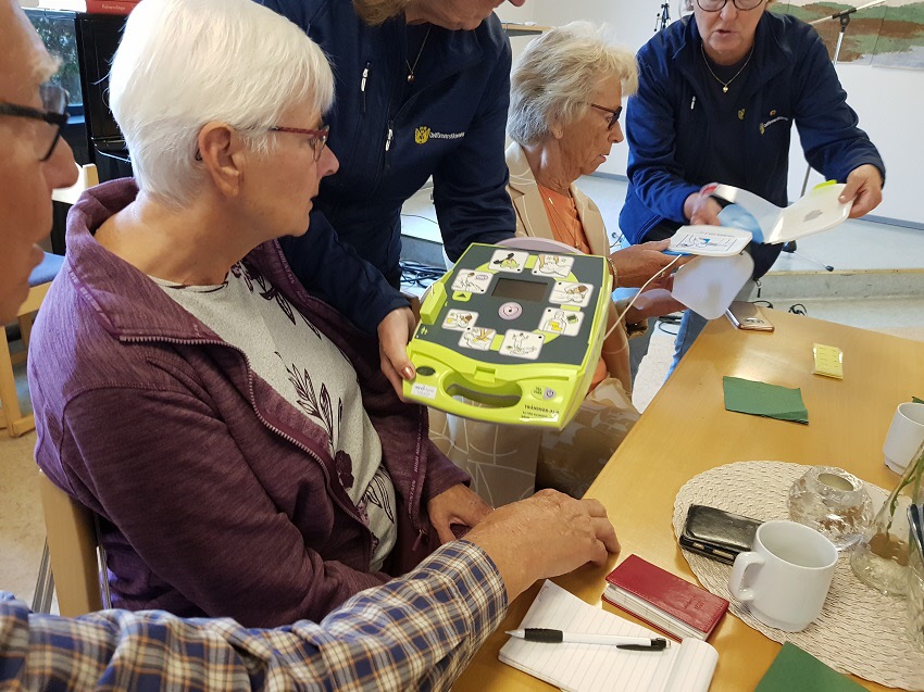 De hade också med sig en hjärtstartare som de gick runt och visade hur den fungerade. På nätet kan du se var hjärtstartare finns i hela landet. Gå in på : www.hjartstartarregistret.se och skriv in "Kumla".