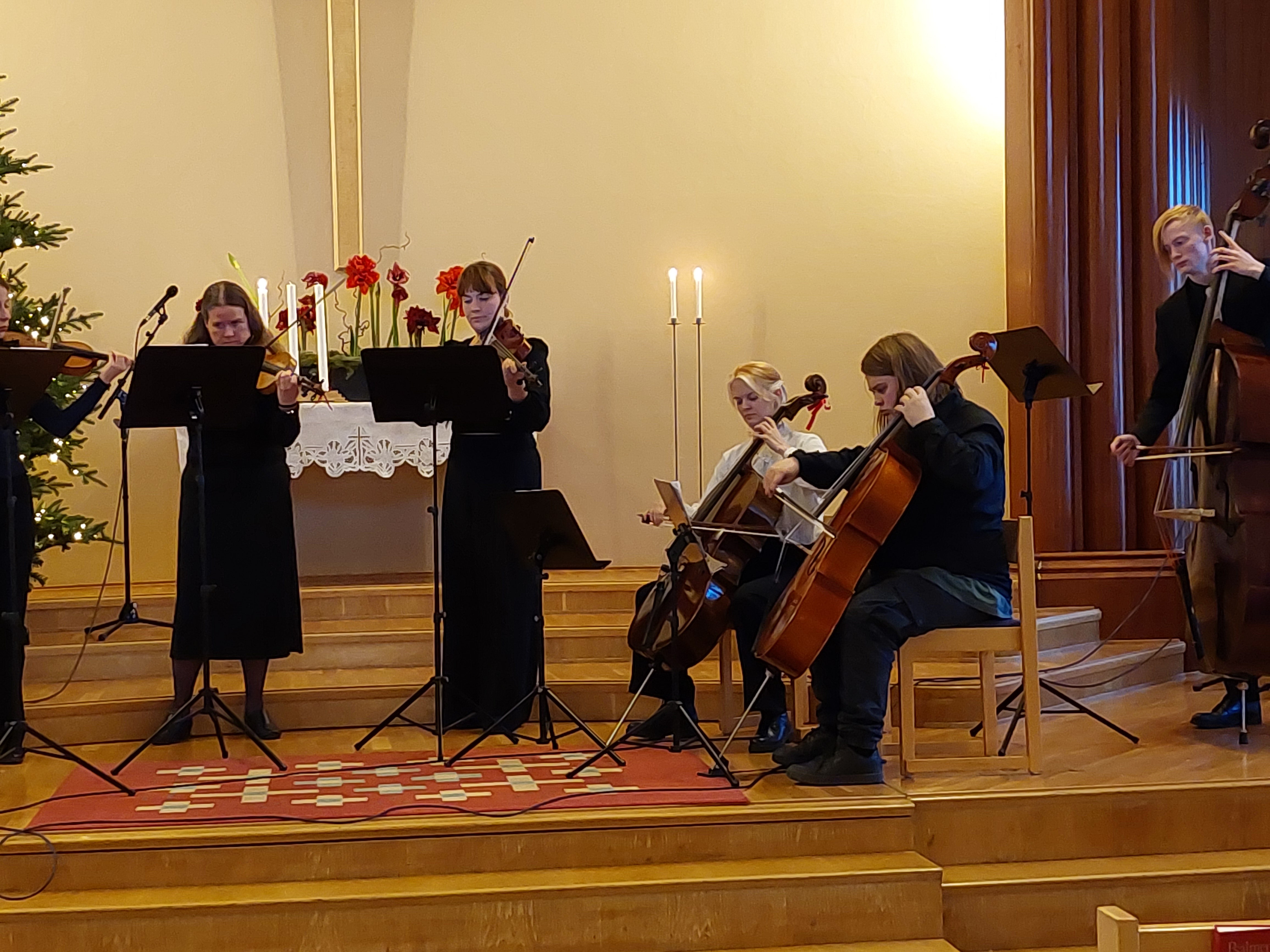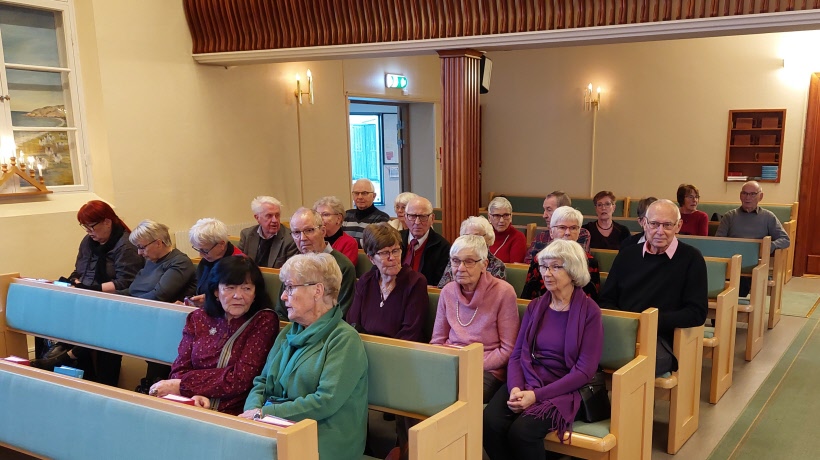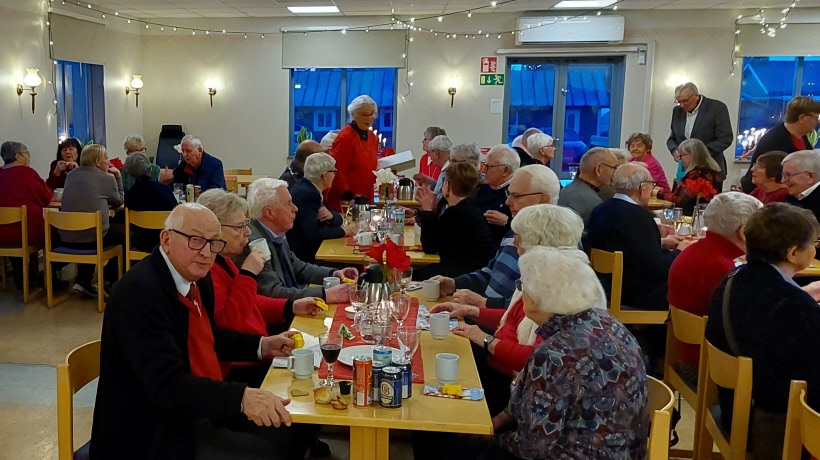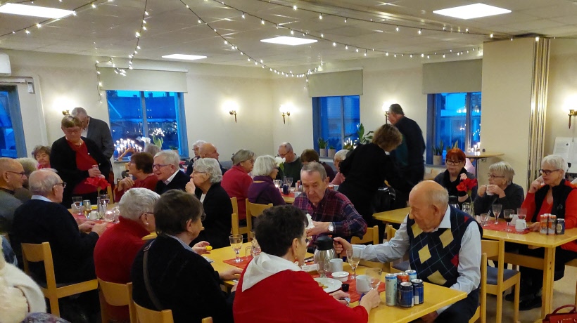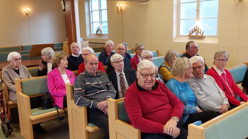 SPF:s sista månadsträff för 2024 hölls i Fylstakyrkan. 62 glada medlemmar fick först lyssna på en grupp duktiga ungdomar från Kävesta Folkhögskola som spelade och sjöng julsånger.