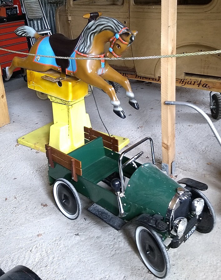 Dessa små lok med fordmotorer har ursprungligen dragit omkring besökarna på Skansen. -