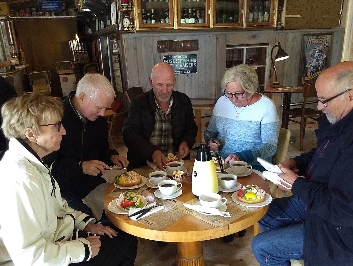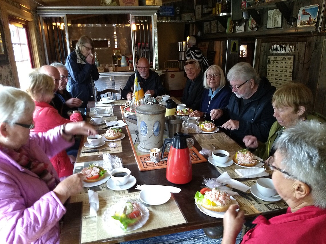 Efter rundturen smakade kaffe och rejäl räksmörgås fantastiskt. -