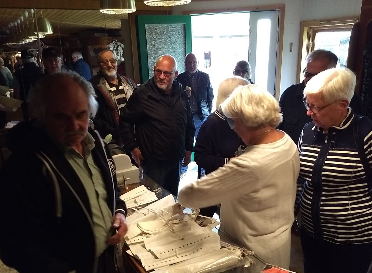 Onsdagen 22 augusti rullade 18 medlemmar i väg i egna bilar mot Hosta i Fellingsbro där Bo Norberg väntade i Nostalgibyn. På klingande dalmål fick vi en fantastisk guidning. Efter kaffe och räkmacka for vi vidare till Frövifors pappermuseum med pappersmaskiner, papperskonst, förpackningar, ölburkar och vacker japansk förpackningskonst.