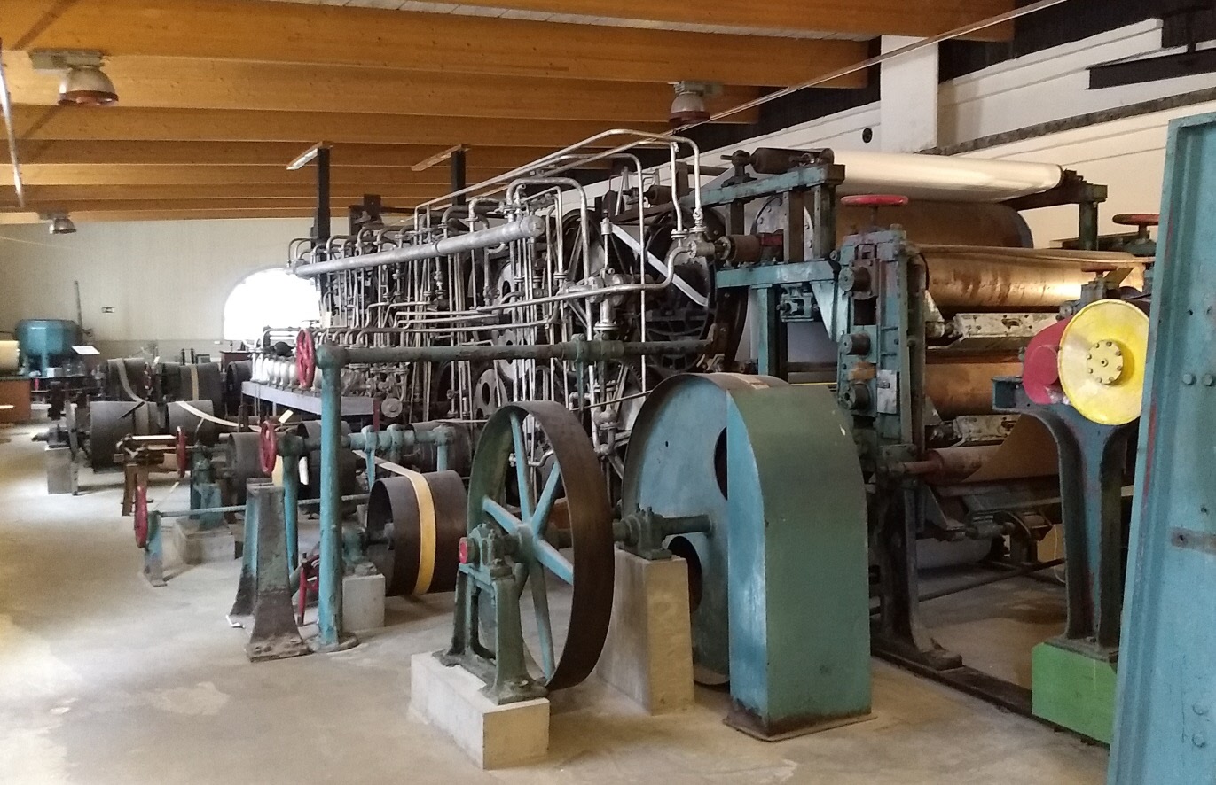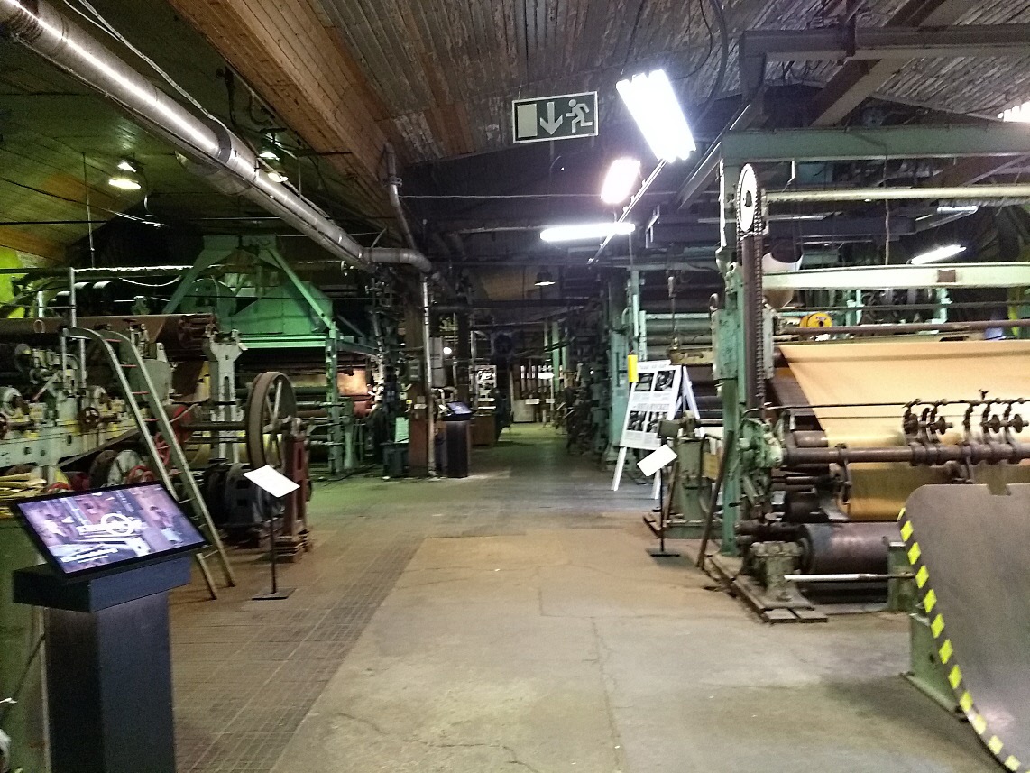 Två av de gamla papperspressarna i en del av museet. Här tillverkades starkpapper eller som vi vanligt folk kallade gråpapper. (brunt) -