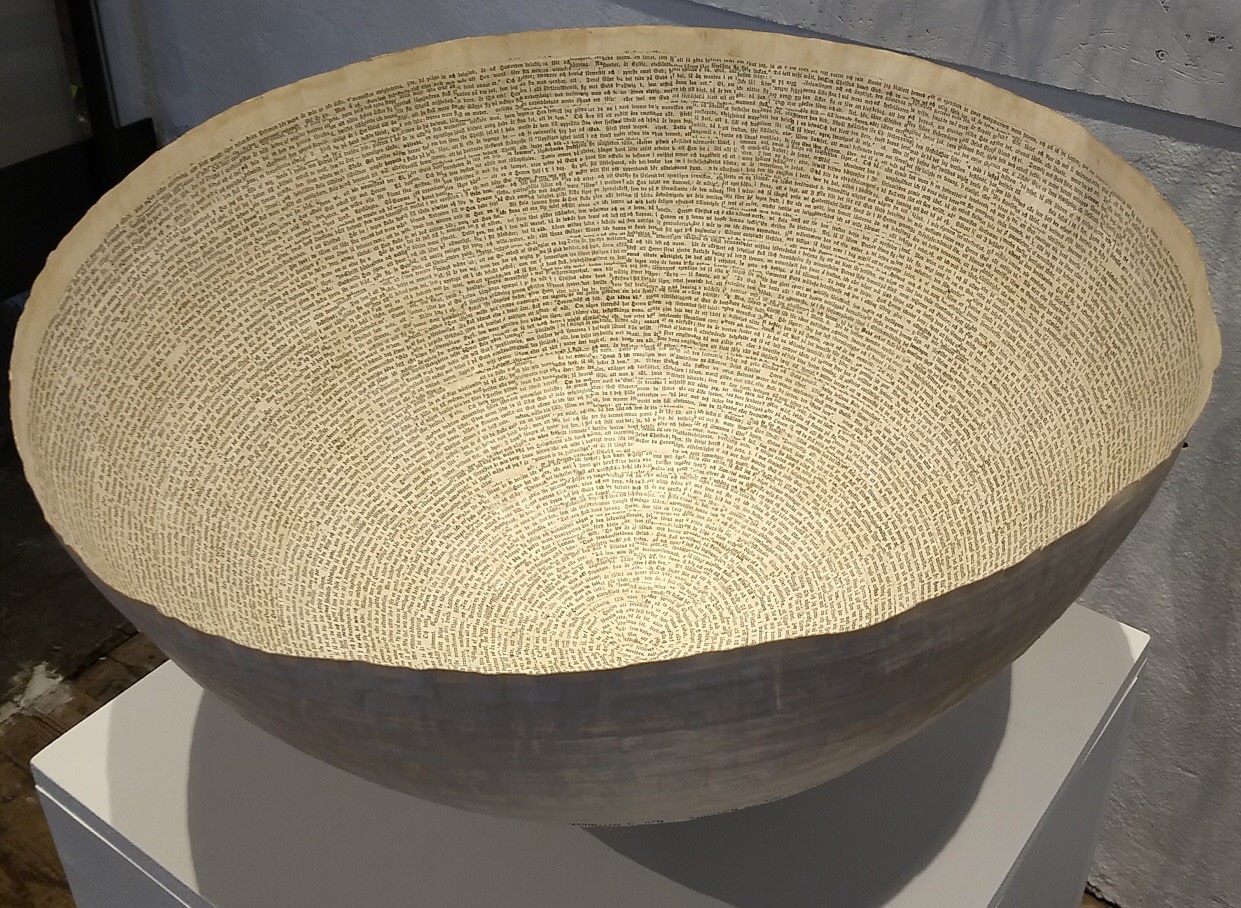 På Frövifors pappermuseet fanns en konstutställning. Jätteskål gjord i tunnt papper. -