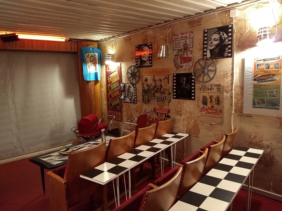 Biosalongen. Bra med bord framför besökaren, perfekt till drickan med popcorn. -