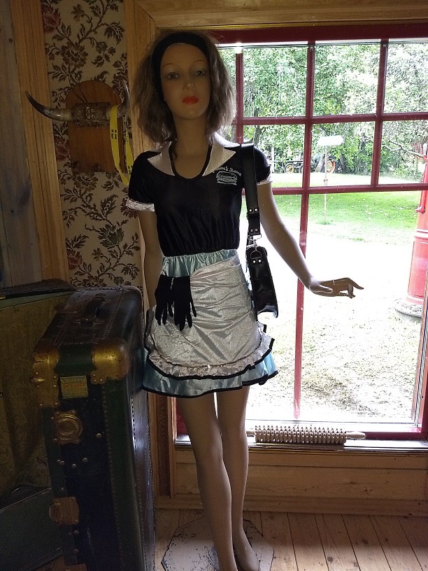 Vår servitris för dagen, Doris, klädd enligt senaste mode. -