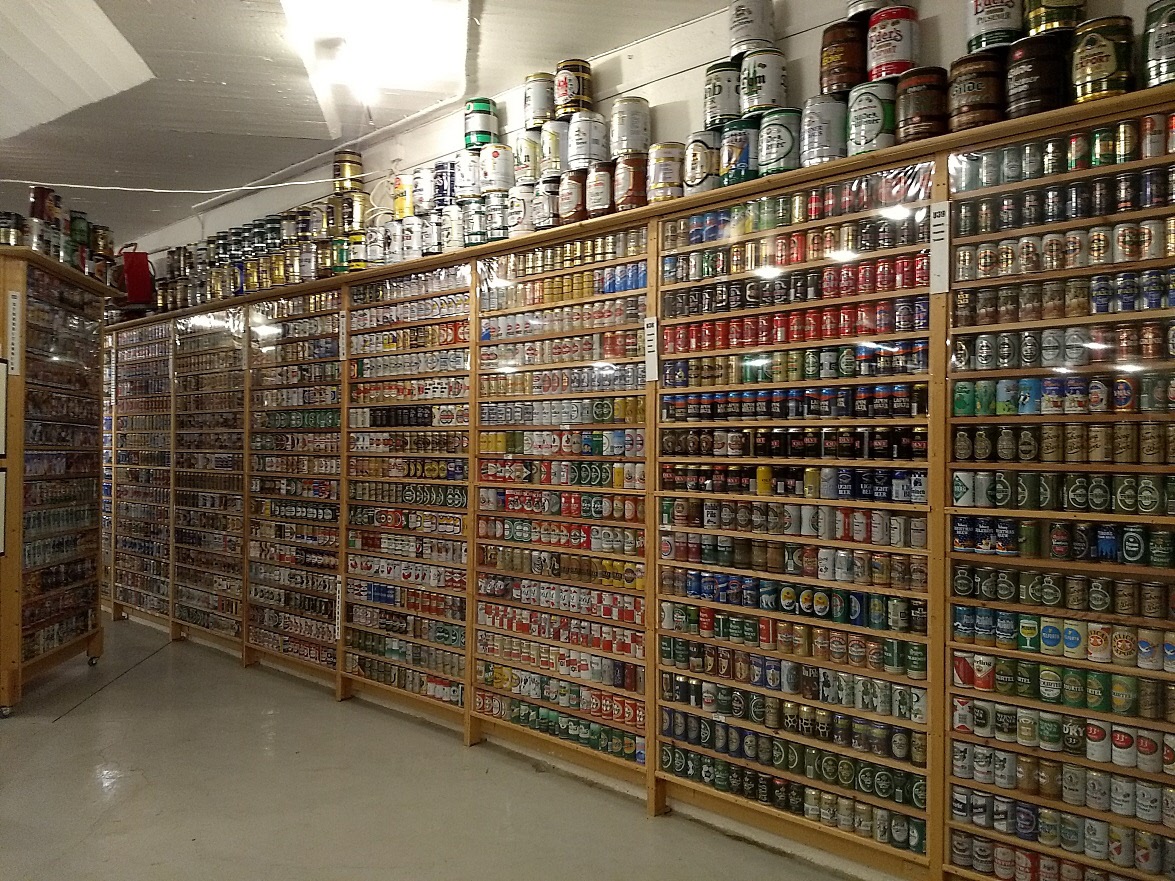 En stor avdelning består av 22.000 ölburkar, alla samlade av denne man. -