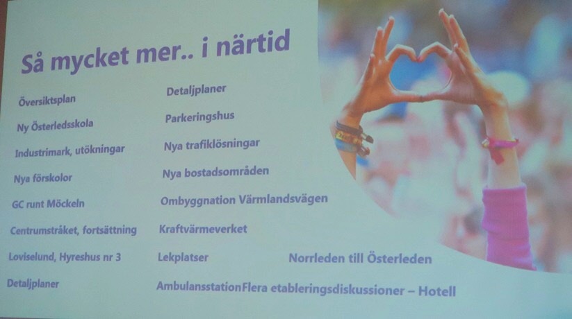Efter Gustaf Hults information intog Karlskoga kommunstyrelses ordförande Tony Ring podiet. Tony berättade om alla nya arbetstillfällen som skapas på grund av att försvarsindustrin växer kraftigt i Karlskoga. På grund av detta har man byggt många nya bostäder och fler är på gång. Bostäder behövs bl.a. för att locka de ca 6000 pendlarna att flytta till Karlskoga. Förutom bostäder försöker man fylla industrins behov av mer lokaler och mark. Man hoppas också på att den planerade Nobelbanan mellan Stockholm och Oslo ska förläggas genom Karlskoga på en bro över Möckeln och att en station ska byggas i Karlskoga.