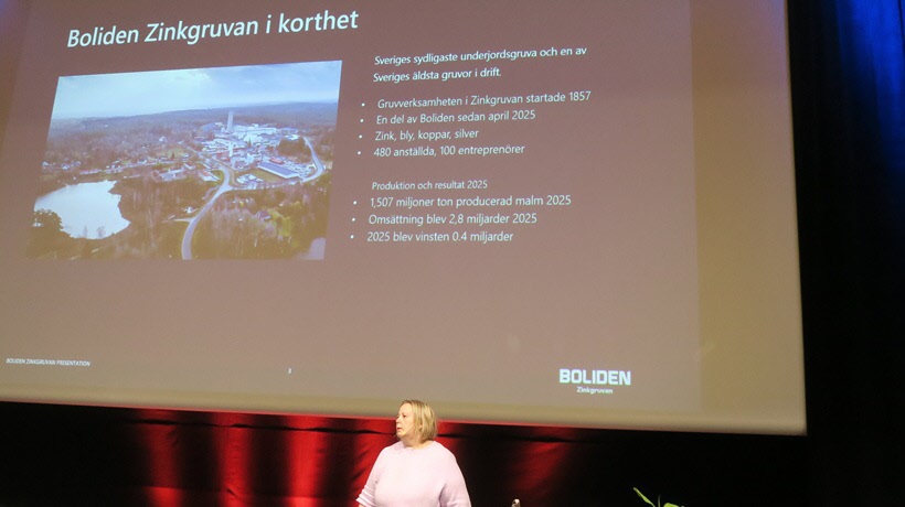 Efter Marias information följde en helt annan information där informationsansvarig Monika Andersson från Boliden Zinkgruvan AB berättade om Askersunds största privata arbetsplats där ca 500 personer arbetar. Gruvan når ner till ett djup av 1400 m och har sin huvudnivå 800 m under markytan. Gruvan består av många mil gruvorter och en bilramp ner till 800 m nivån. Man bryter mest zink men även koppar och en del silver och slutprodukten är ett anrikat pulver med de olika metallerna som transporteras till Otterbäcken vid Vänern för båttansport till Bolidens smältverk.