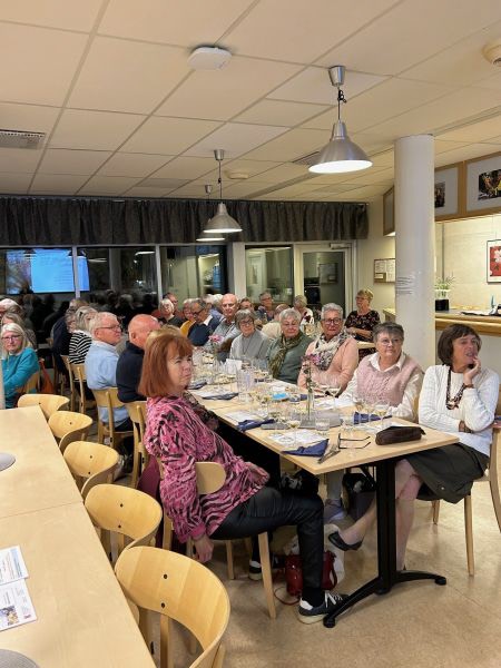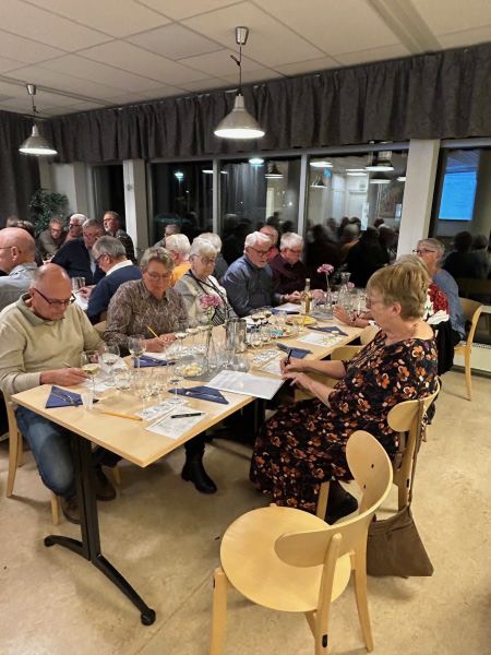Ca 40 SPF-medlemmar kom till Svanen på torsdagskvällen för att prova vin, äta mat och umgås.