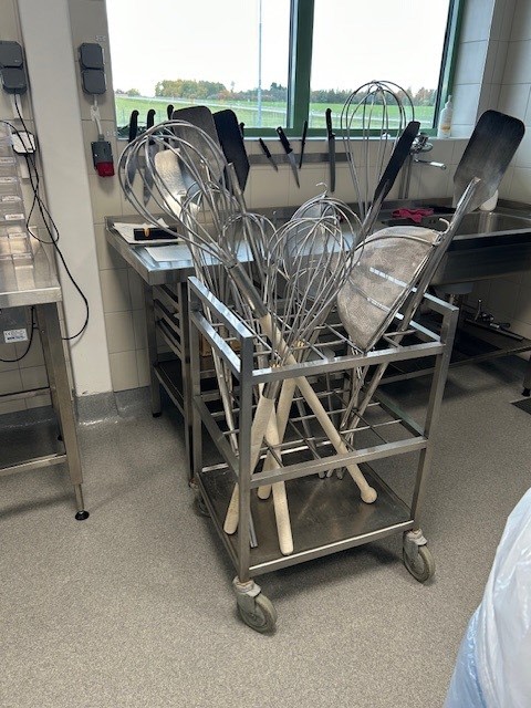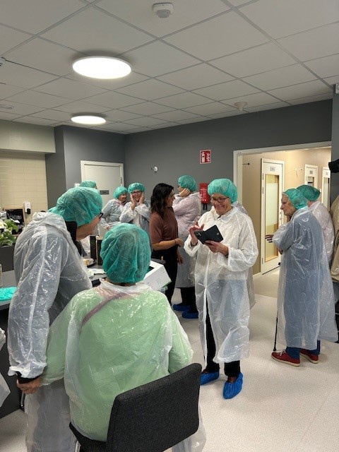 Efter genomgången fick vi en rundvandring och vi besökare fick mössor, skyddsrockar och skoskydd att använda enligt gällande hygiennormer. Vi fick se de flesta delarna av verksamheten, dock pågick ingen matlagning (sker huvudsakligen på förmiddagarna).