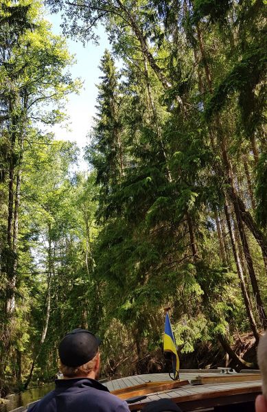 I stålande sommarväder gick ett 40-tal glada SPF-are ombord på båtarna som skulle visa var och hur John Bauer levde och fick sin inspiration till tomtar och troll. I den smala kanalen mitt i skogen kunde man nästan ana att trollen tittade på oss. Många detaljer omkring familjen Bauers tragiska olycka på Vättern, berättade vår guide.