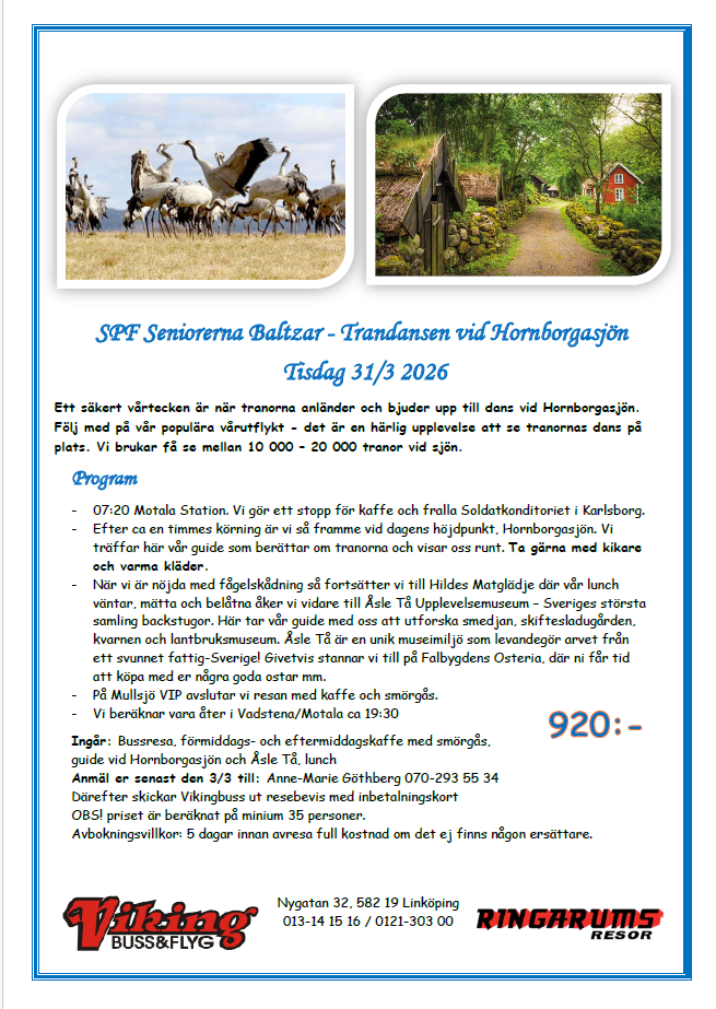 Alla SPF Seniorer och deras vänner är varmt välkomna!