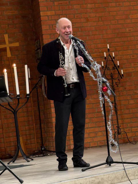 Först samlades medlemmarna i kyrksalen för att lyssna till klarinettisten Dan Larsson som underhöll under rubriken ”Julen i ord och ton”. Vi fick njuta av varierande musik från Sibelius till Povel Ramel.