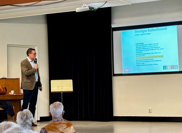 Dagens gäst var Göta Kanals VD Roger Altsäter. Han berättade om kanalens intressanta historia från invigningen 1832 till förra veckans första spadtag för kanalens nya Besökscentrum i Berg. Kanalen blev i år utsedd till Europas bästa cykelled och är även upptagen som en del av Sveriges kulturkanon.