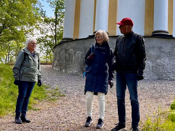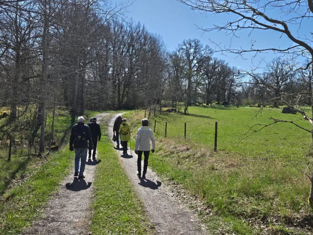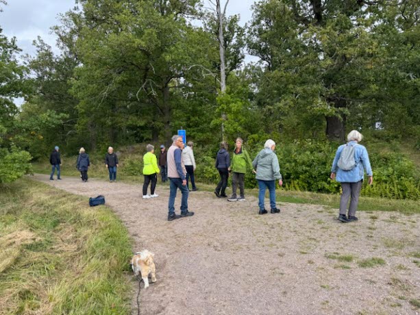 Vikten av att röra på sig och att träna upp sin balansförmåga inte minst för oss äldre berättade Eva om och presenterade också mycket höga siffror på hur många av oss äldre som varje år råkar ut för fallskador med dödlig eller långa rehabiliteringstider som följd. Efter att vi genomfört promenaden med ett antal stopp med övningar på vägen, så hade vi alla fått inspiration och exempel på övningar, som vi själva kan göra både hemma och ute i naturen.