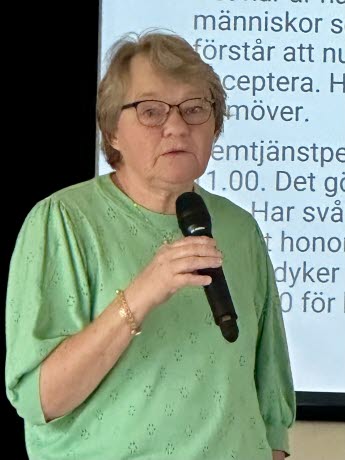 Ordförande Maggie Aronson presenterade höstens evenemang för medlemarna och hälsade välkommen till mötets föredragshållare Eva Hellman som presenterade sin bok ”De sista ljuva åren” som handlade om hur hon upplevt och fått kunskap om hur vården fungerar inom kommunens äldreomsorg. Hon berättade om olika episoder som hänt personerna i hennes bok. Det finns mycket personal som gör ett mycket fint arbete, men tyvärr saknas det ibland kunskaper både vad gäller hantering och språkförståelse. Vi fick en fin inblick i hur vården kan upplevas och vi hoppas ju arbetet med förbättringar ska fortsätta inom vård- och omsorgsnämnden under Jonatan Hermanssons ledning.